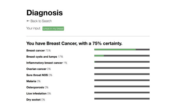 Provides a diagnosis based on symptoms trained on Mayo Clinic articles